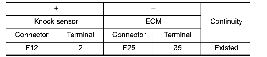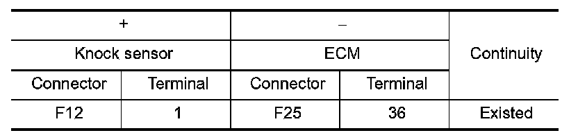 1.Check the continuity between knock sensor harness connector and ECM harness connector.