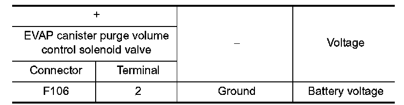 4.Check the voltage between EVAP canister purge volume control solenoid valve harness connector and ground.