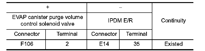 3.Check the continuity between EVAP canister purge volume control solenoid valve harness connector and