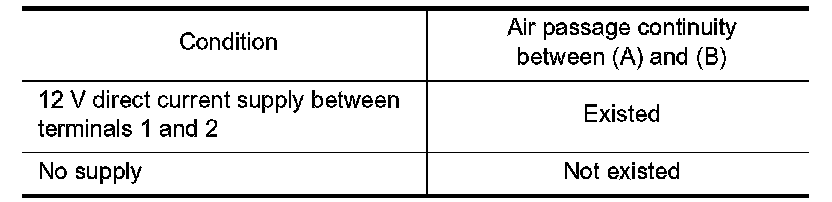 4.Check air passage continuity of EVAP canister purge volume control solenoid valve as per the following conditions.