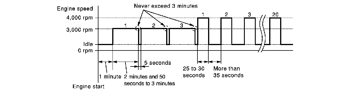 -Increase the engine speed up to 3,000 to 3,500 rpm and keep it for 2 minutes and 50 seconds to 3 minutes.