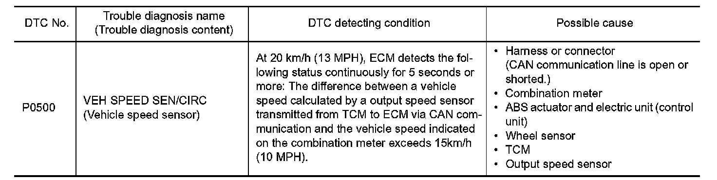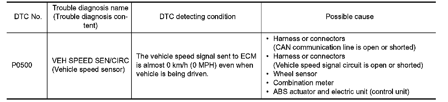 - If DTC P0500 is displayed with DTC UXXXX, first perform the trouble diagnosis for DTC UXXXX.