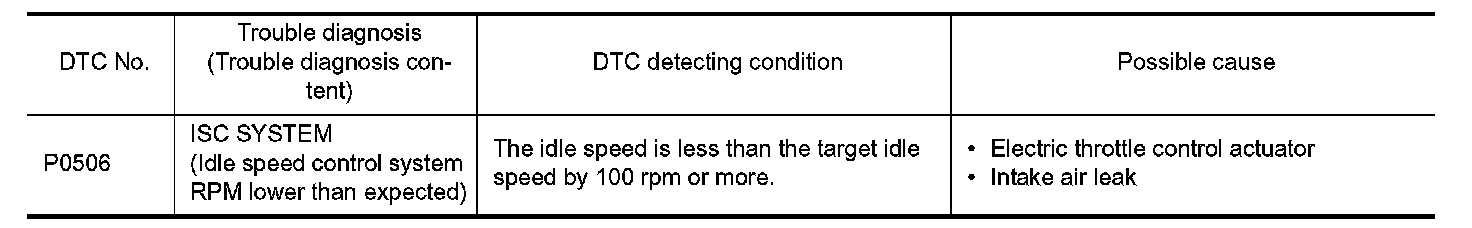 If DTC P0506 is displayed with other DTC, first perform the trouble diagnosis for the other DTC.