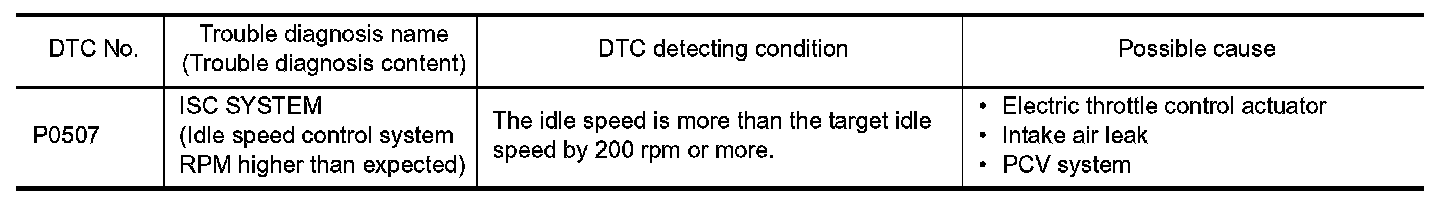 If DTC P0507 is displayed with other DTC, first perform the trouble diagnosis for the other DTC.