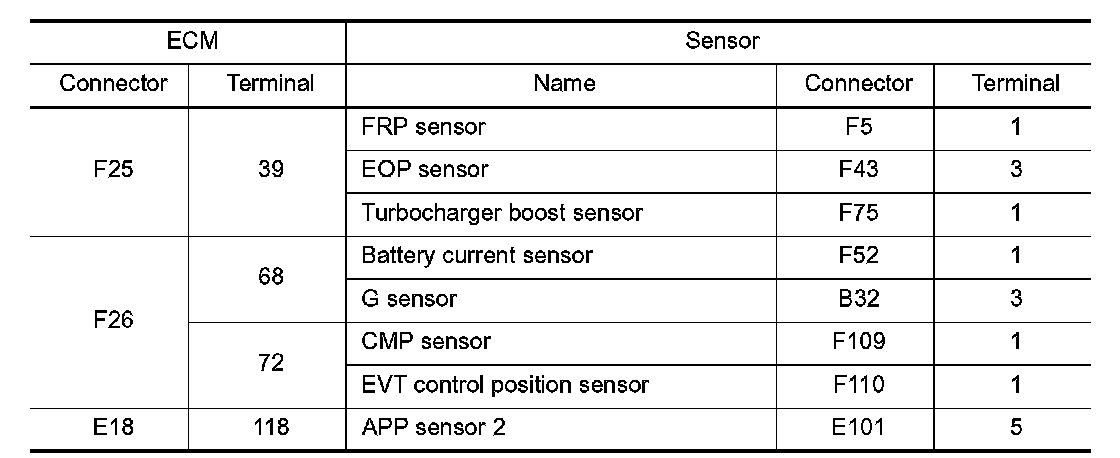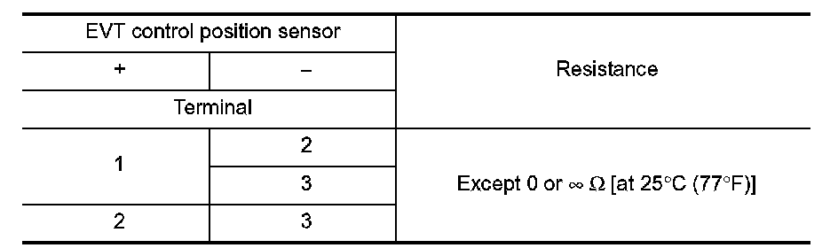 Check resistance EVT control position sensor terminals as shown below.
