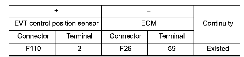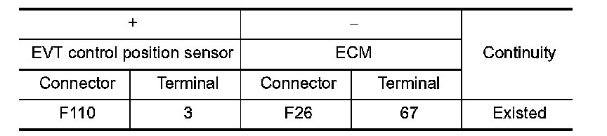 2.Check the continuity between EVT control position sensor harness connector and ECM harness connector.