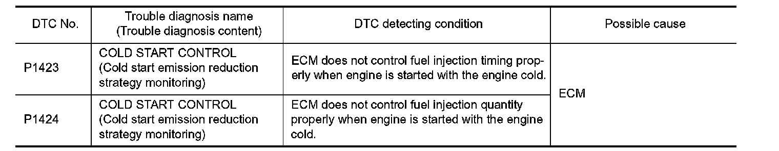 ECM controls fuel injection timing and fuel injection quantity when engine is started with the engine cold.