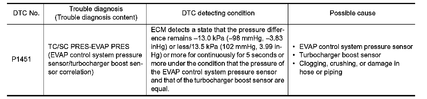 If DTC P1451 is displayed with DTC P0452 or P0453, first perform the trouble diagnosis for DTC P0452 or