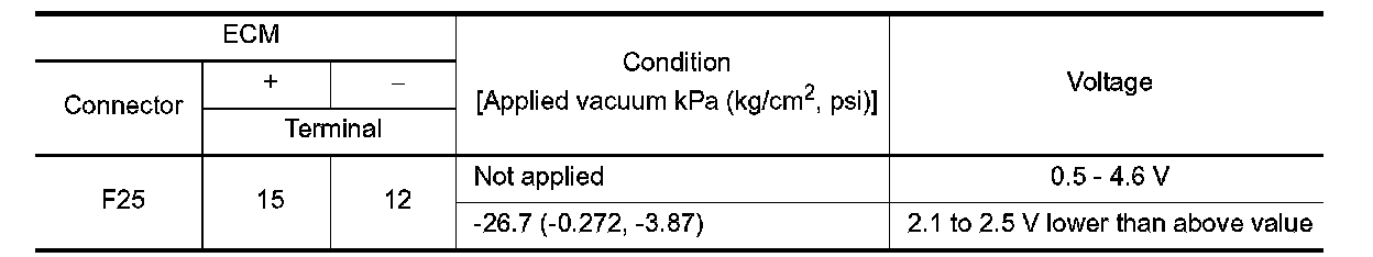 - Do not apply below -93.3 kPa (-0.952 kg/cm2, -13.53 psi) or pressure over 101.3 kPa (1.033 kg/cm2, 14.69 psi).