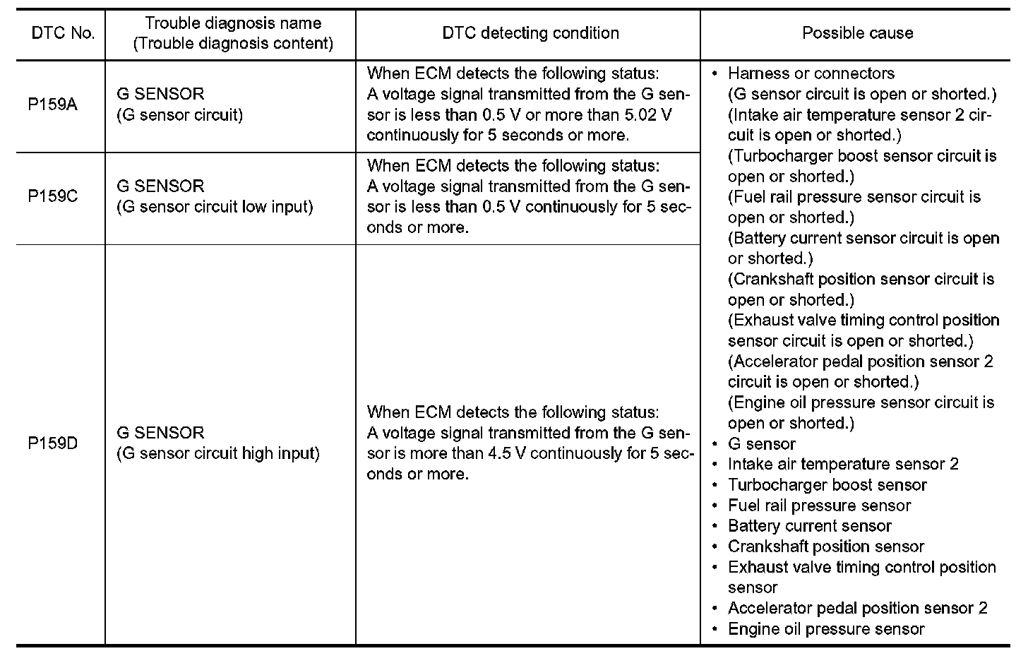 P159A, P159C, P159D G SENSOR
