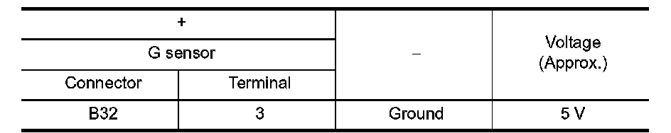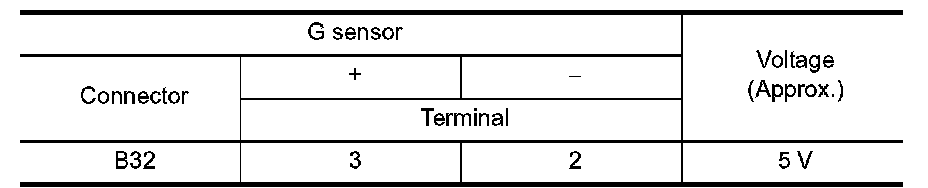 Check the voltage between G sensor harness connector terminal and ground.