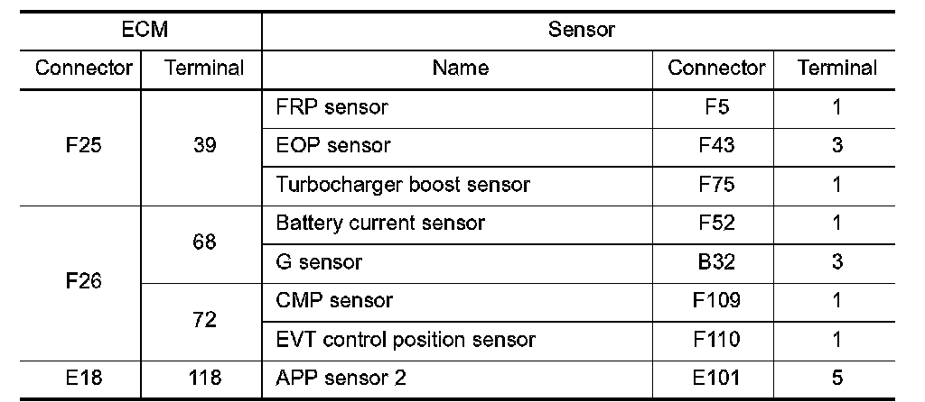 2.Disconnect ECM harness connectors and each sensor harness connectors