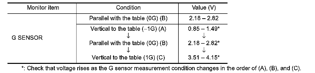 2. CHECK G SENSOR SIGNAL CIRCUIT
