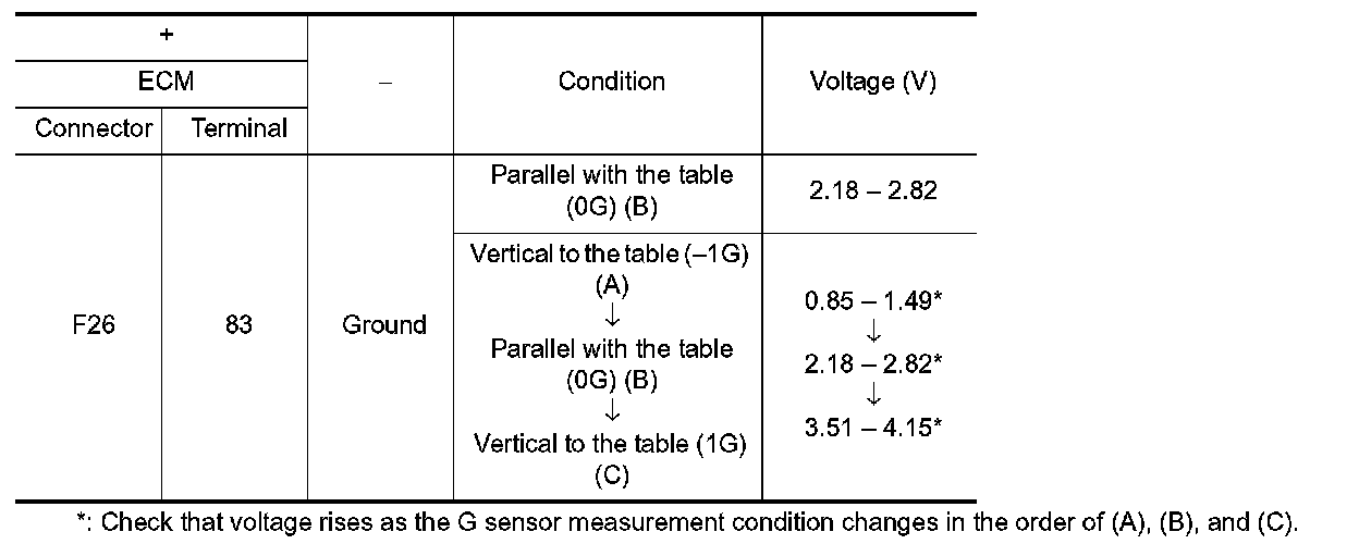 4.Check the voltage between G sensor harness connector terminals.