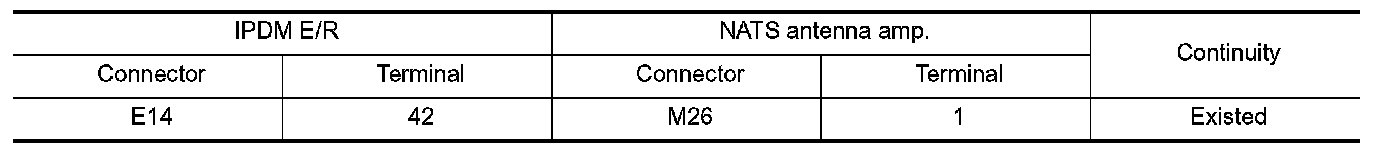 2.Check continuity between IPDM E/R harness connector and NATS antenna amp. connector.
