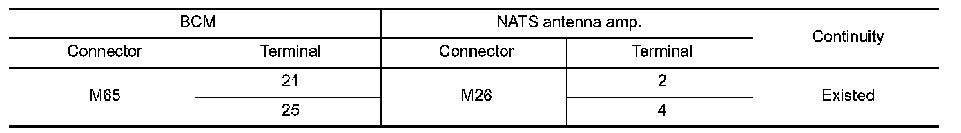 2.Check continuity between BCM harness connector and NATS antenna amp. harness connector.