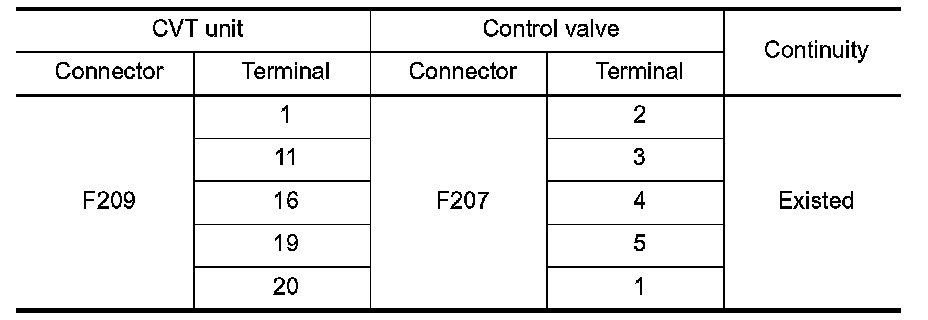 2.Check continuity between CVT unit harness terminals and control valve harness connector terminals.