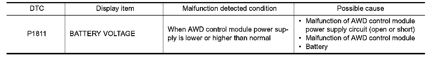 P1811 POWER SUPPLY CIRCUIT FOR AWD CONTROL MODULE