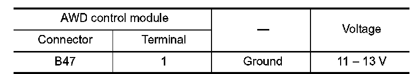 Check the AWD control module pin terminals for damage or loose connection with harness connector.