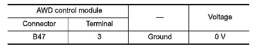 3.Check the harness for open or short between AWD control module harness connector No.3 terminal and