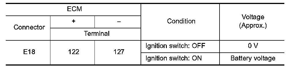 Check the voltage between ECM harness connector terminals as per the following conditions.