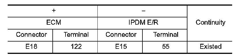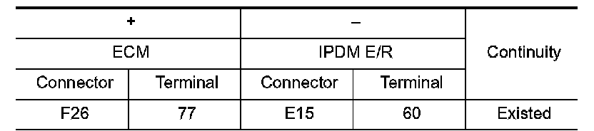 1.Check the continuity between ECM harness connector and IPDM E/R harness connector.