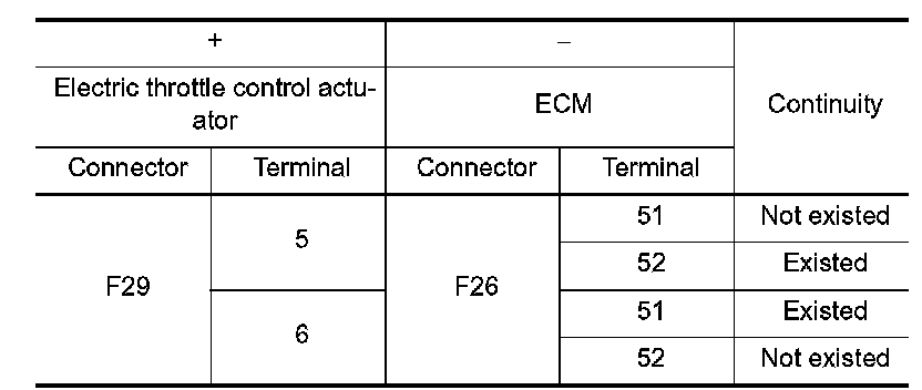 4.Check the continuity between electric throttle control actuator harness connector and ECM harness connector.
