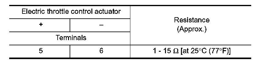 3.Check the resistance between electric throttle control actuator terminals as per the following.
