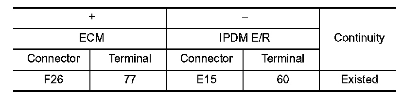3.Check the continuity between ECM harness connector and IPDM E/R harness connector.