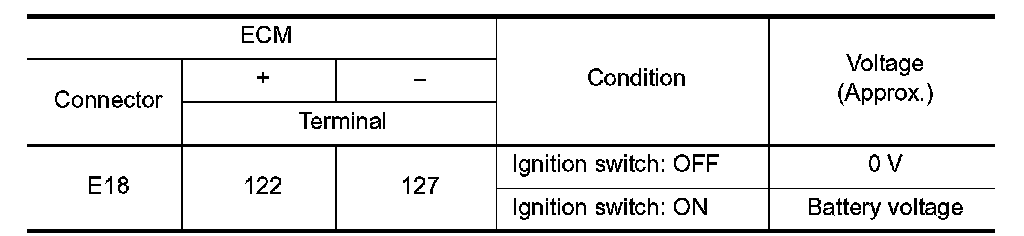Check the voltage between ECM harness connector and ground as per the following conditions.