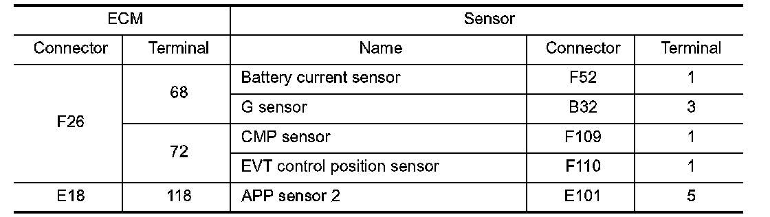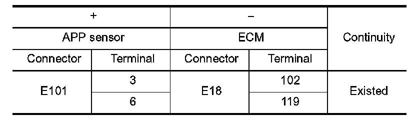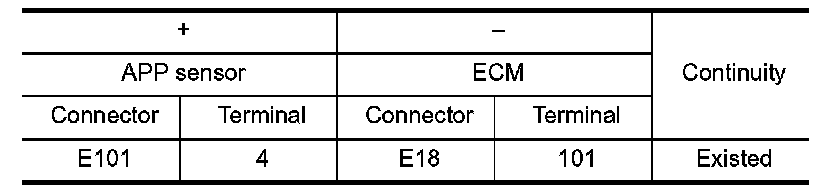 1.Check the continuity between APP sensor harness connector and ECM harness connector.