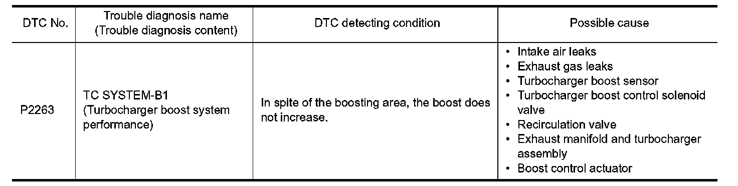 If DTC P2263 is displayed with DTC P0237 or P0238, first perform the trouble diagnosis for DTC P0237 or