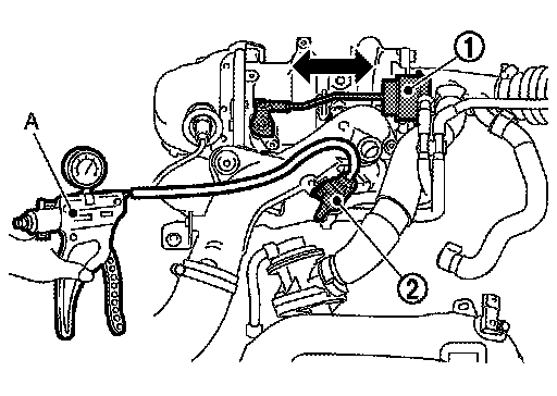 3.Install pressure pump (A) to turbocharger boost sensor (1).