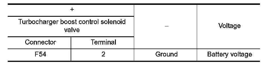 3.Check the voltage between turbocharger boost control solenoid valve harness connector and ground.