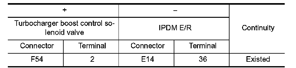 3.Check the continuity between turbocharger boost control solenoid valve harness connector and IPDM E/R