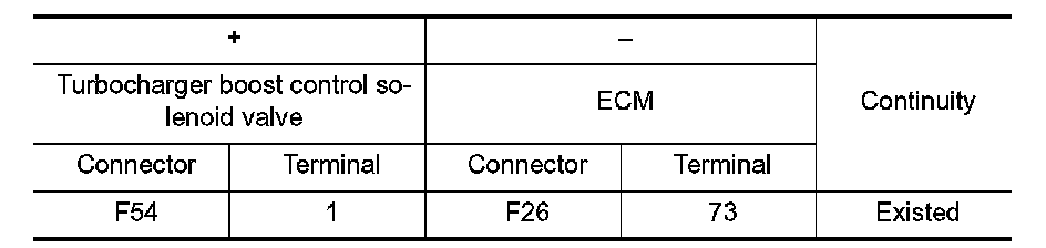 3.Check the continuity between turbocharger boost control solenoid valve harness connector and ECM harness connector.