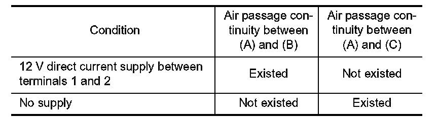 4.Check air passage continuity of turbocharger boost control solenoid valve as per the following conditions.