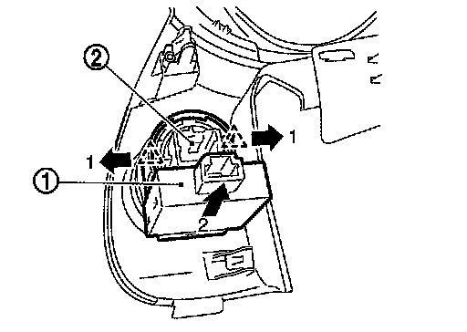2.Pull NATS antenna amp. to remove it from push-button ignition switch (2).