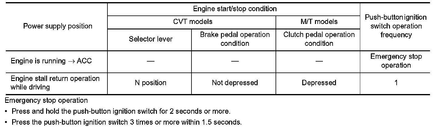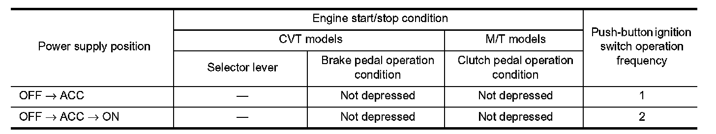 *: For the engine start condition, refer to "POWER SUPPLY POSITION CHANGE TABLE BY PUSH-BUTTON
