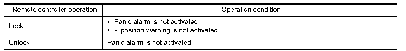 If the following condition are satisfied, remote keyless entry operation is performed when the Intelligent Key is operated.