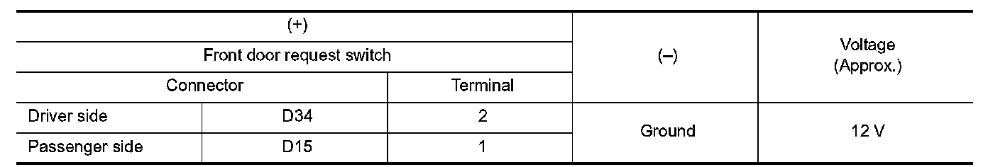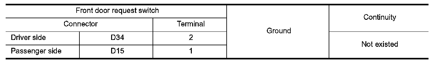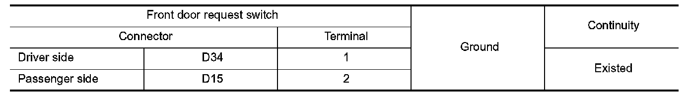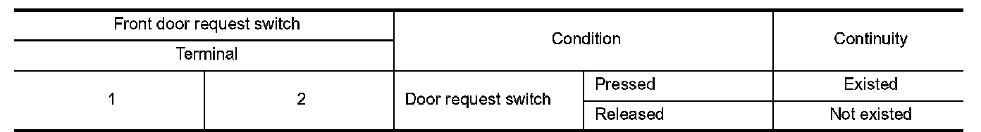 3.Check continuity between malfunctioning front door request switch terminals.