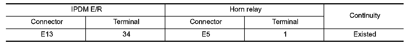 3.Check continuity between IPDM E/R harness connector and horn relay harness connector.