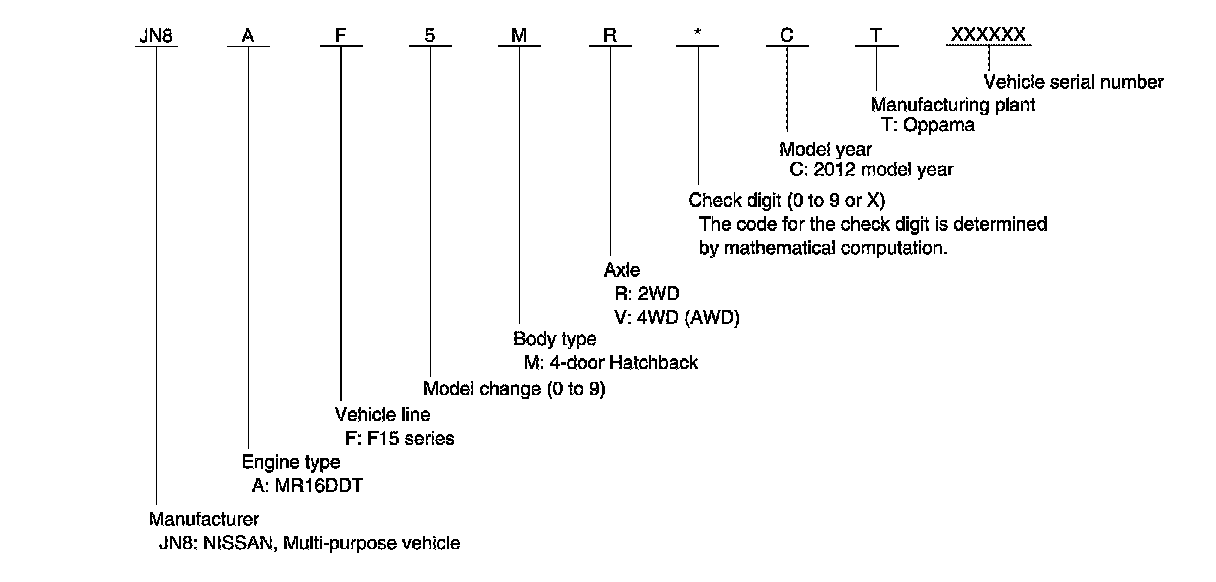 VEHICLE IDENTIFICATION NUMBER ARRANGEMENT