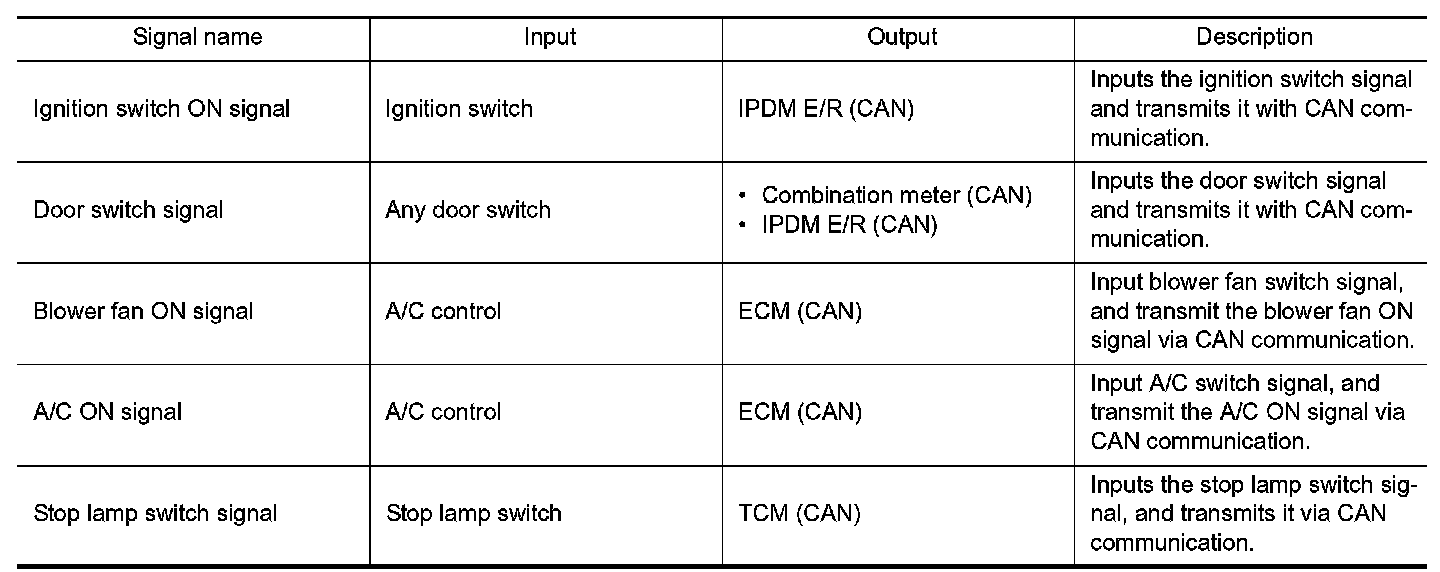 SIGNAL TRANSMISSION FUNCTION LIST