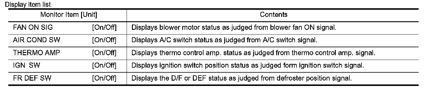 AIR CONDITIONER : CONSULT Function (BCM - AIR CONDITIONER) (Manual A/C)