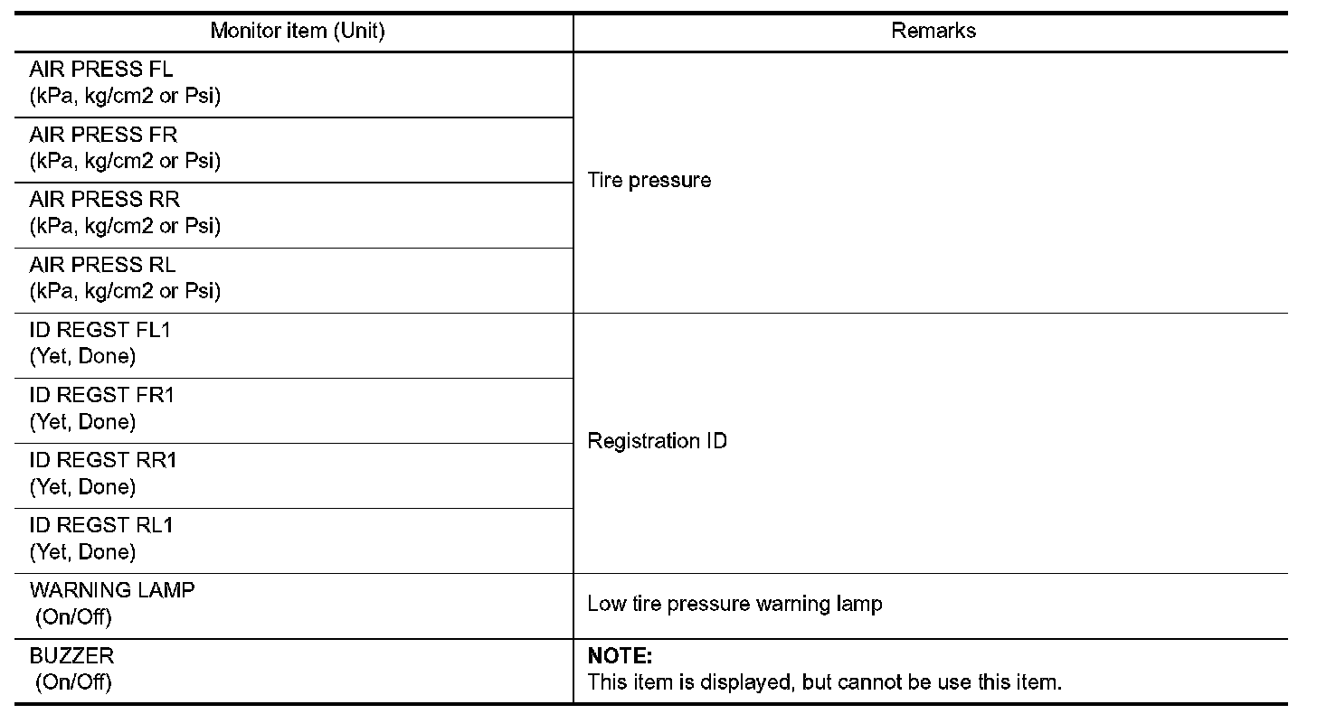 AIR PRESSURE MONITOR : CONSULT Function (BCM - AIR PRESSURE MONITOR)