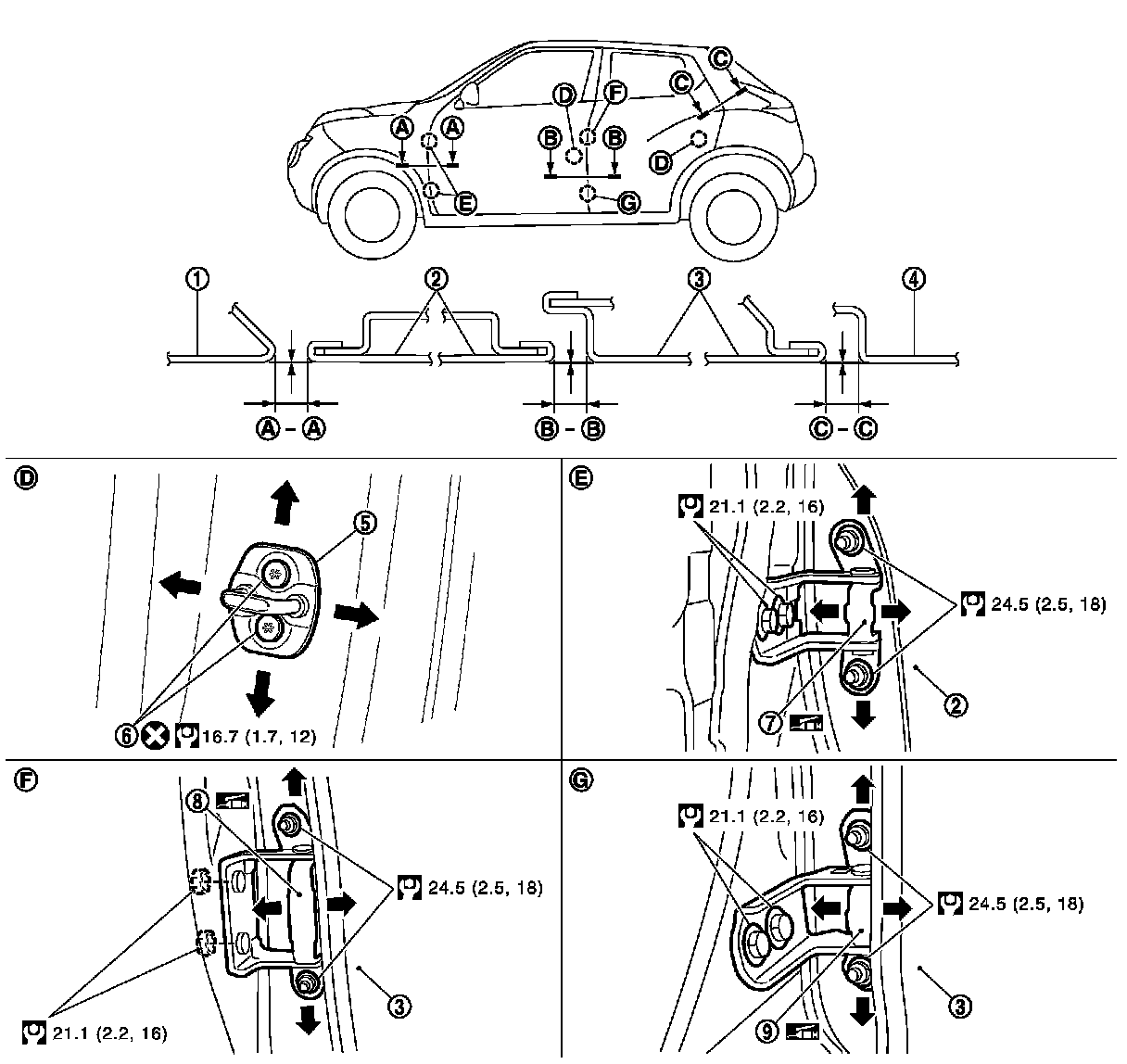 5.Loosen door hinge mounting bolts on body side.
