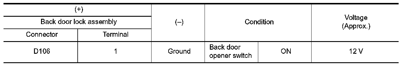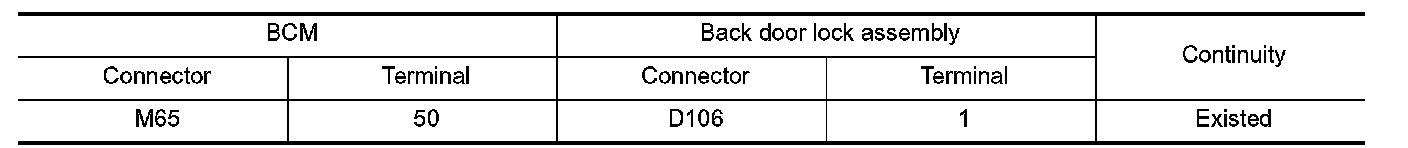 2.Check continuity between BCM harness connector and back door lock assembly harness connector.