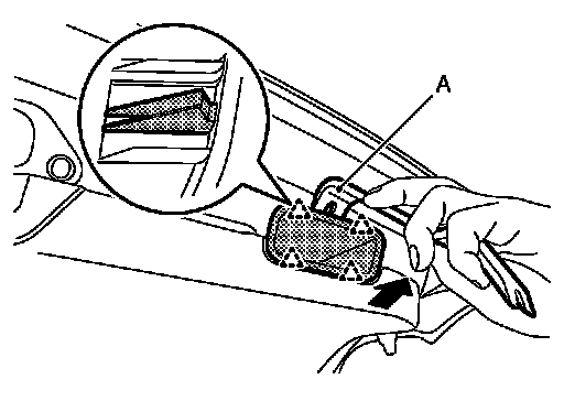 2.Disengage back door pull handle fixing pawls with a remover tool (A), and then remove back door pull handle.