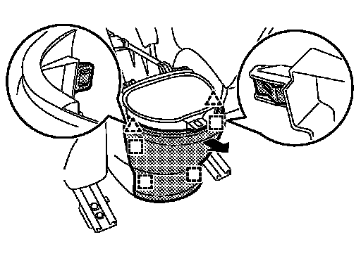 2.Pull back the glove box cover assembly while holding the lower side and disengage the pawls.